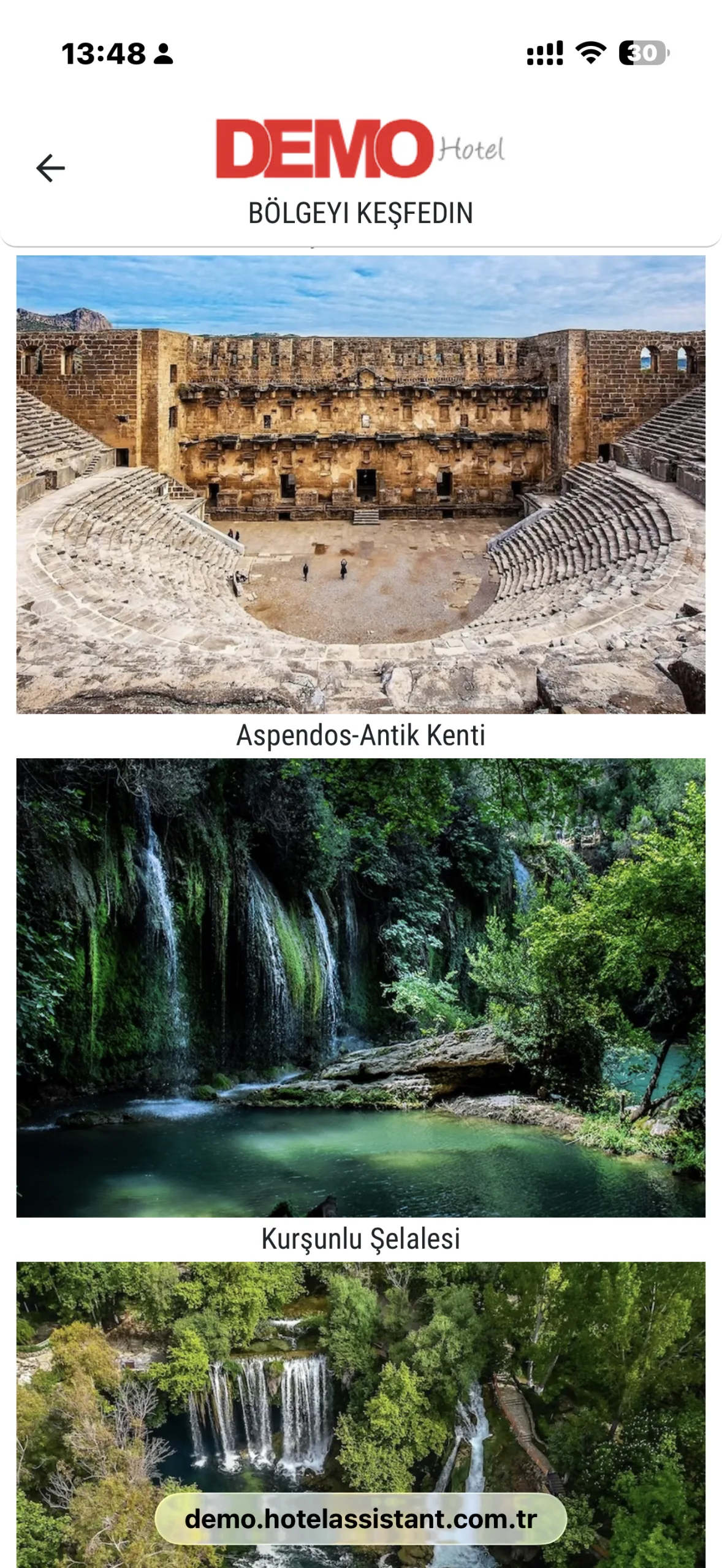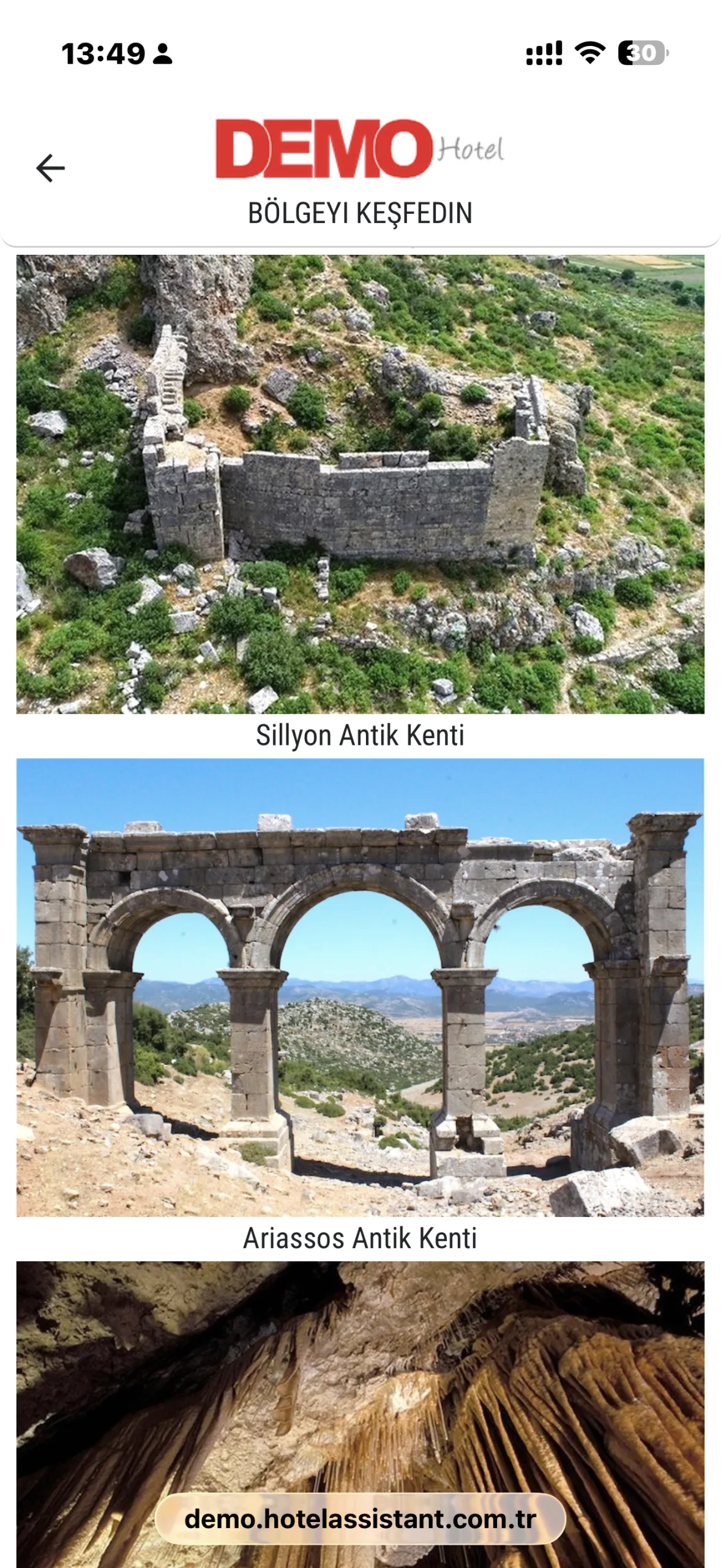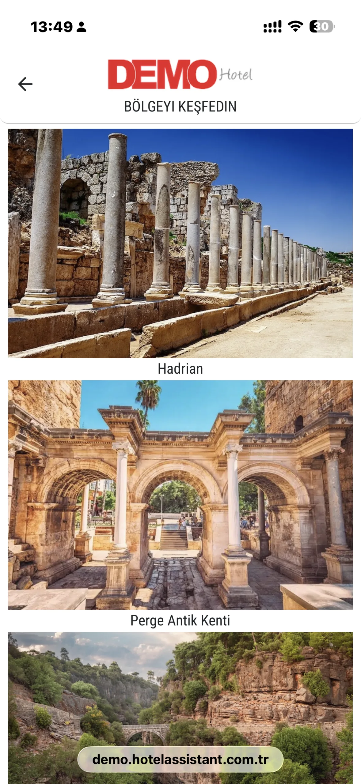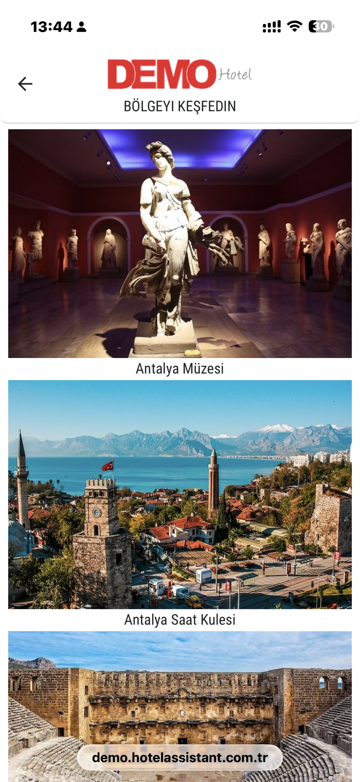 Hotel Assistant ile misafirler, konakladıkları bölgenin tarihi, kültürel ve doğal güzelliklerini tek ekrandan keşfedebilir. Antalya ve çevresinde yer alan önemli müzeler, antik kentler, doğal alanlar ve gezilecek noktalar misafirlere anlaşılır ve düzenli şekilde sunulur.