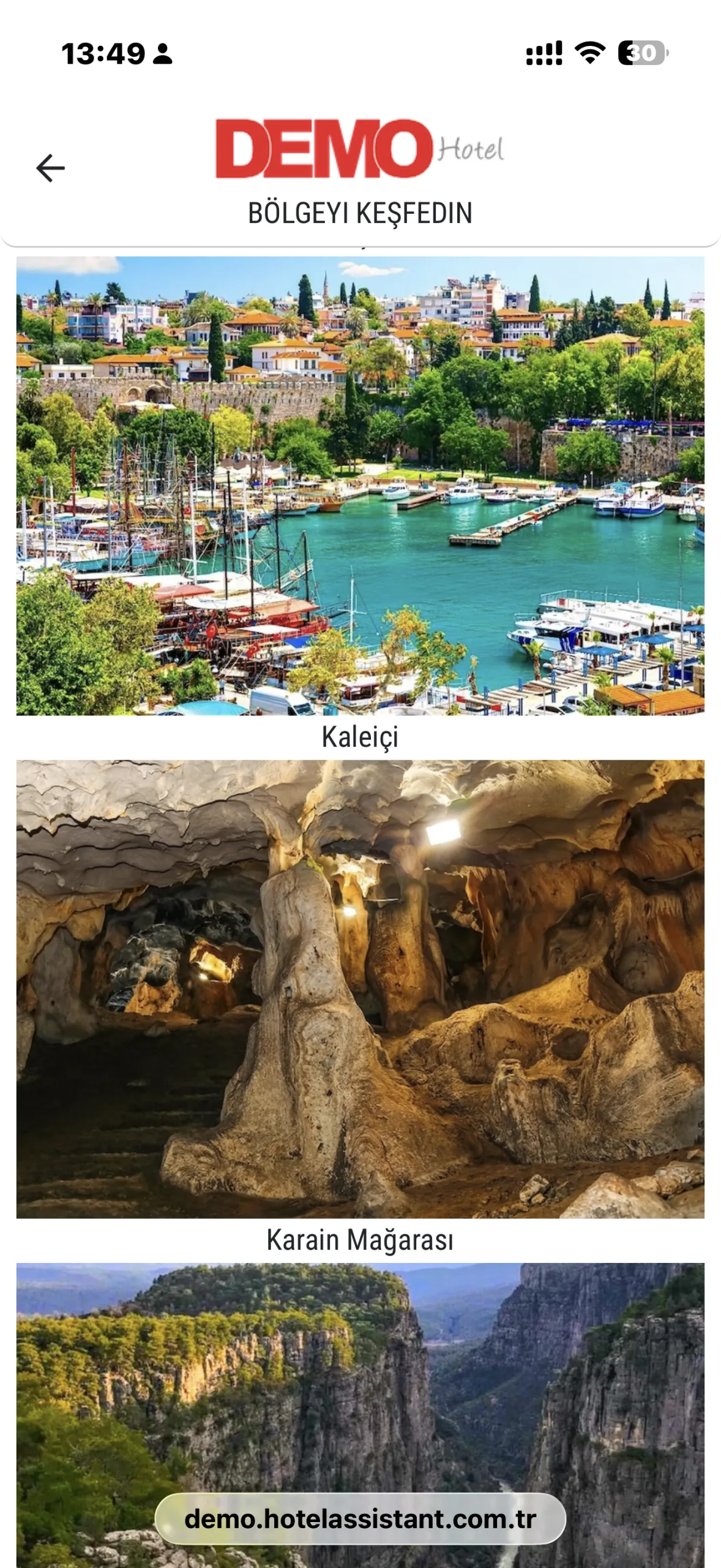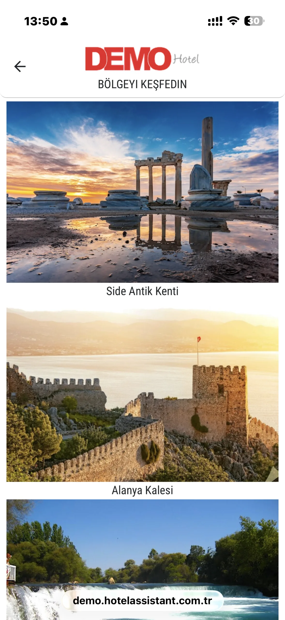 Hotel Assistant’ın Bölgeyi Keşfedin alanı sayesinde misafirler, Antalya ve çevresindeki gezilecek yerler hakkında önceden bilgi alabilir, tatillerini daha planlı ve keyifli hale getirebilir. Bu özellik, konaklama deneyimini sadece otelle sınırlı olmaktan çıkararak bölgeyi keşfetmeye dönüştürür.