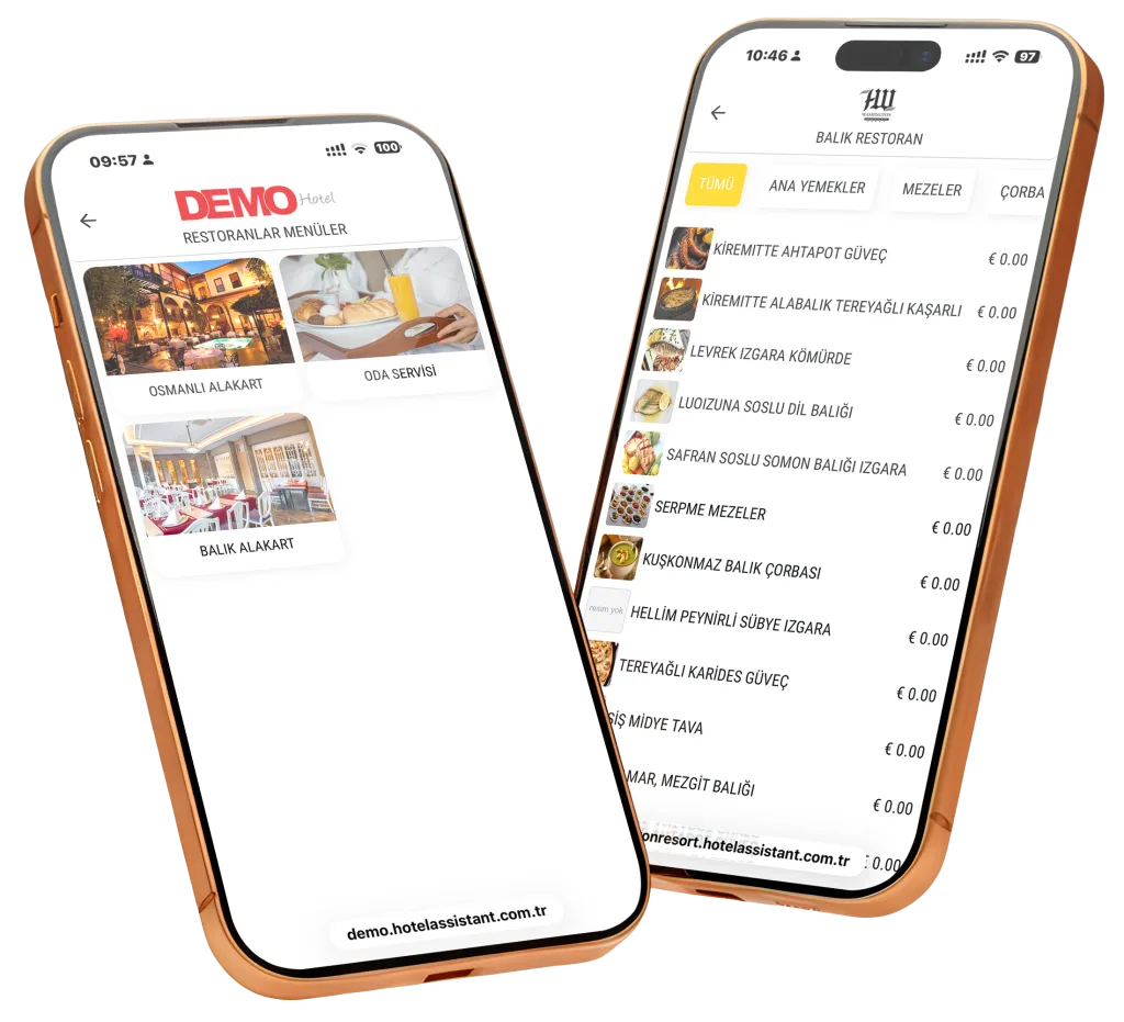 Misafirler, otel bünyesindeki tüm alakart restoran ve menülere tek ekrandan hızlıca ulaşabilir. Özel menüler güncel içerikleriyle dijital olarak sunulur.